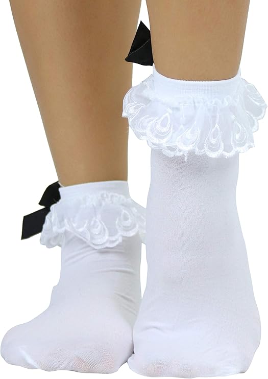 Lace Ruffle Frilly Ankle Socks for Women, Cute Cotton Socks with Lace Bow Ruffle Trim Socks
