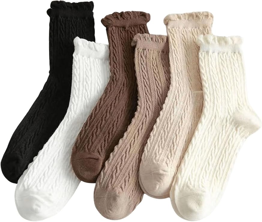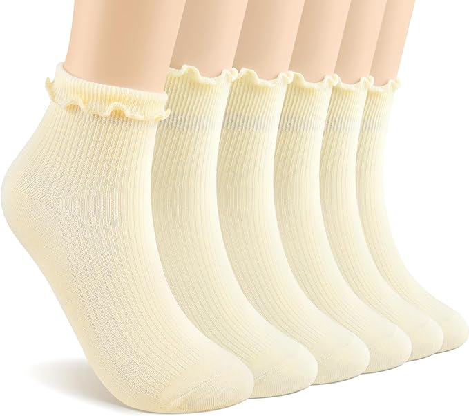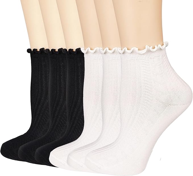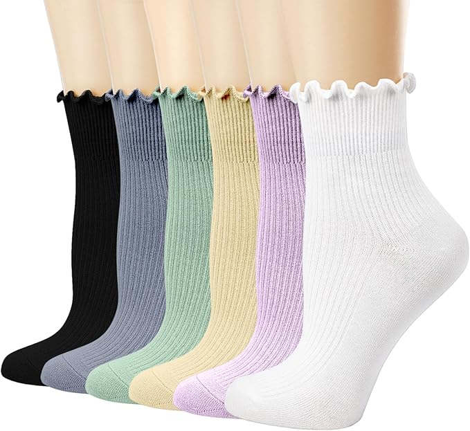 Women's Ruffle Socks,Casual Cute Ankle Socks Breathable Knit Cotton Soft Frilly Crew Socks for Women 6 Pack