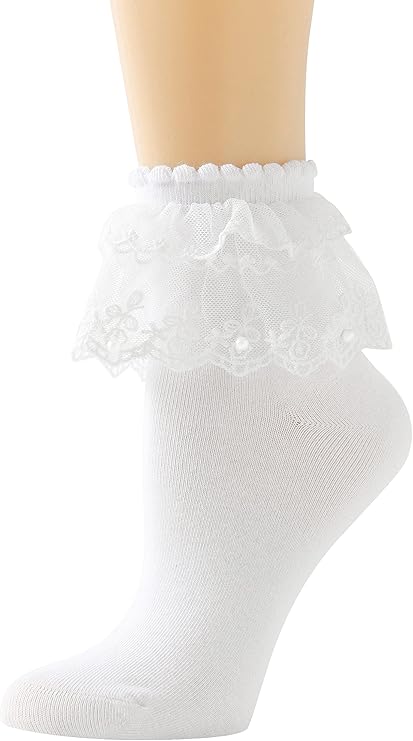 Lace Ruffle Frilly Ankle Socks for Women - Pearl Lace Socks